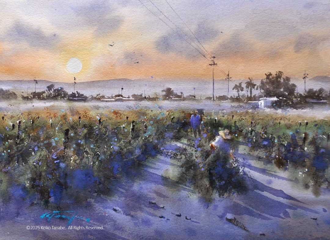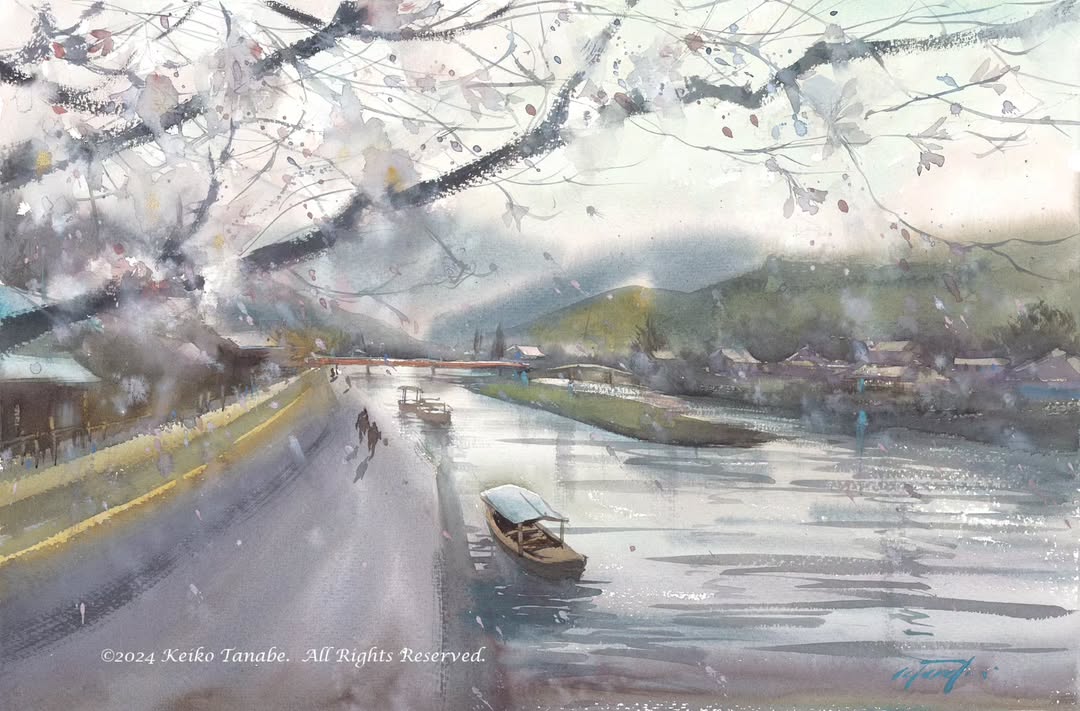 What makes Keiko's method different? She blends the economy of traditional Japanese ink painting with Western watercolor luminosity. Her signature philosophy is "Keep it simple, and you’ll have a strong painting".