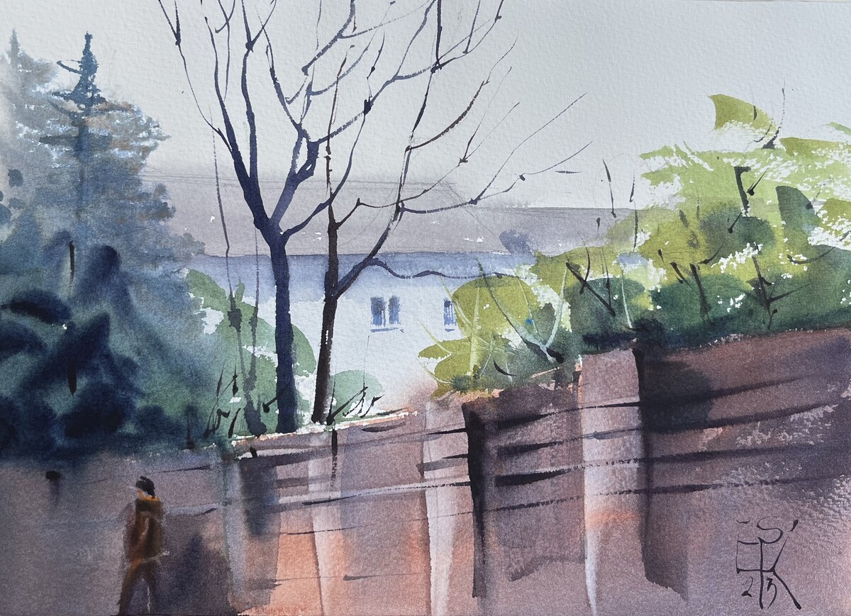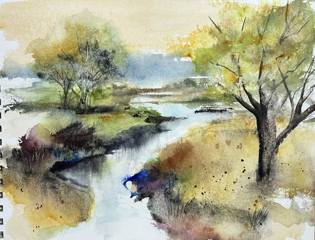 Watercolor gives me an oblique strategy approach to art because one has to to approach it in an almost „opposite“ way of thinking from other media. It keeps my brain active! I use watercolor a lot for studies, plein air sketches, and underpaintings for my pastel paintings.»