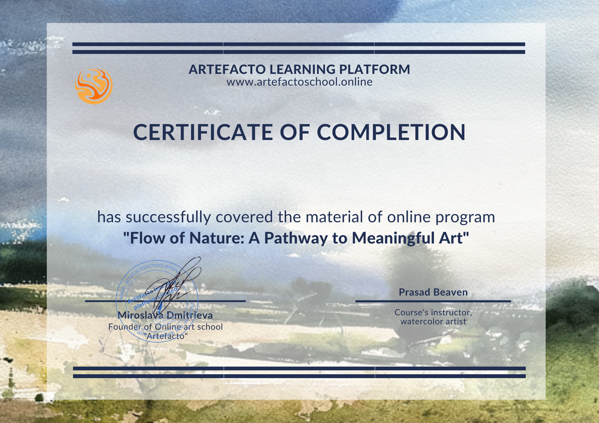Upon completion of the learning program, all students will receive a certificate. The certificate could be used as a proof of your qualification's upgrade at work (if it is related to arts) and for your private affairs as a recognition of your mastery in painting.